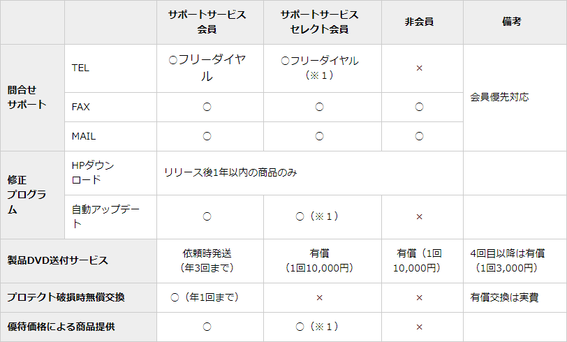 • 製品DVD送付サービスの無償提供(年3回まで)(サポートサービス会員のみ)